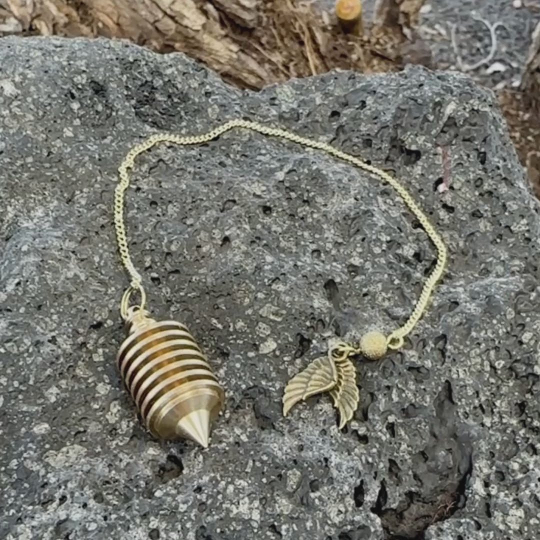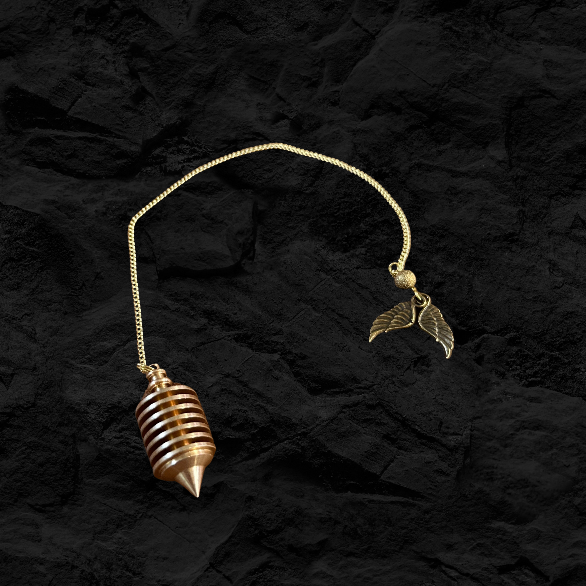 Introducing the Enchanted Metal Pendulum Collection, a mystical treasure that will awaken your inner diviner and guide you through the ethereal realms of knowledge and intuition. This magical Gold Metal Pendulum is a divination talisman that merges celestial elegance with heavenly guidance. The element of gold pierces through the fogginess and helps get you direct answers as the ethereal angel wings inspire you to refine your questions to receive divine insight.